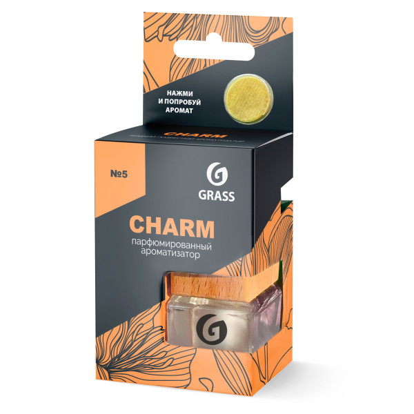 Ароматический подвесной ароматизатор для автомобиля CHARM. В форме квадратного стеклянного флакона с деревянной крышкой. Подвесной аксессуар украсит салон автомобиля и наполнит его нежным ароматом легендарной парфюмерной композиции из французских масел. Необычная и стильная подвеска будет привлекать внимание пассажиров. Масла, входящие в состав, позволяют ему быть насыщенным и в то же время мягким. Отлично освежает и наполняет салон автомобиля приятным и завораживающим ароматом карамели, с восточными нотами дыни, личи, чабреца на цветочном фоне.