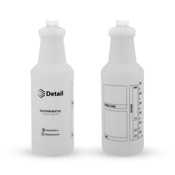 Бутылка объемом 1 литр для разведения и работы с кислотными и щелочными составами, а также органическими растворителями. Наличие измерительной шкалы позволяет соблюдать правильные пропорции при разведении составов.