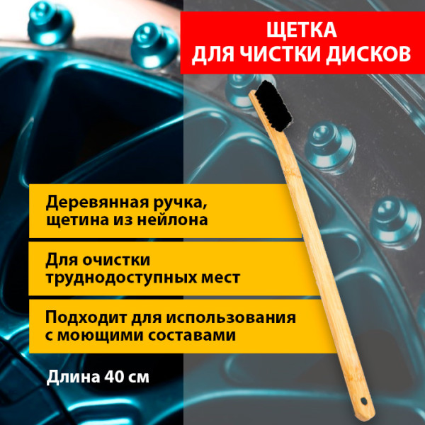 Детейлинговая деревянная щетка для очистки колесных дисков