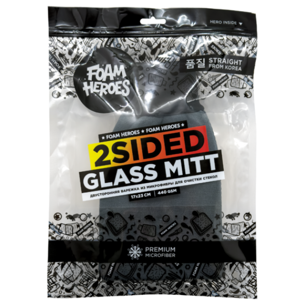 Foam Heroes 2Sided Glass Mitt двусторонняя варежка из микрофибры для очистки стекол 17х23см, 440г/м2