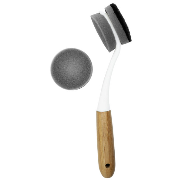 Эко набор для мытья посуды и труднодоступных мест. Состоит из бамбукового держателя и 2х губок. Бамбук не впитывает влагу, не гниет, не создает неприятного запаха, в ручке предусмотрено отверстие для подвешивания. Щетка стильная и чрезвычайно удобная в применении предназначена для мытья посуды, столовых приборов, кухонной утвари, а также подходит для чистки поверхности плит и раковин. Длинная ручка позволяет легко очистить труднодоступные места.