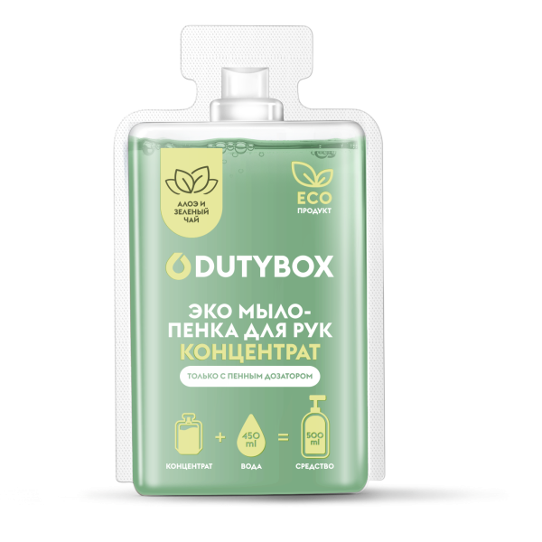 Мыло-пенка для рук из линейки DutyBox «Алоэ вера и зеленый чай» - это концентрат увлажняющего мыла с бархатной текстурой и нежным ароматом. Мыло обеспечивает деликатный уход за кожей. Благодаря входящим в состав смягчающим компонентам сохраняет защитные функции кожи, не вызывая сухости и раздражения. Подходит для применения с первых дней жизни (0+). Жидкое мыло не содержит фосфатов, SLES, SLS, парабенов и агрессинах ПАВ. Продукт подходит для пенного дозатора. Одна капсула 50 мл = 0,5 литров готового продукта! Объем: 50 мл.