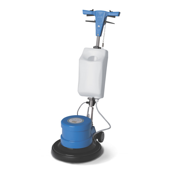 Универсальная машина для чистки пола и ковровых покрытий, а также для полировки. Благодаря двум конденсаторам конструкция обладает большей мощностью и надежностью. Вес 45кг, длина кабеля 12м, скорость 154 оборотов в минуту. Диаметр щеток 17 дюймов.