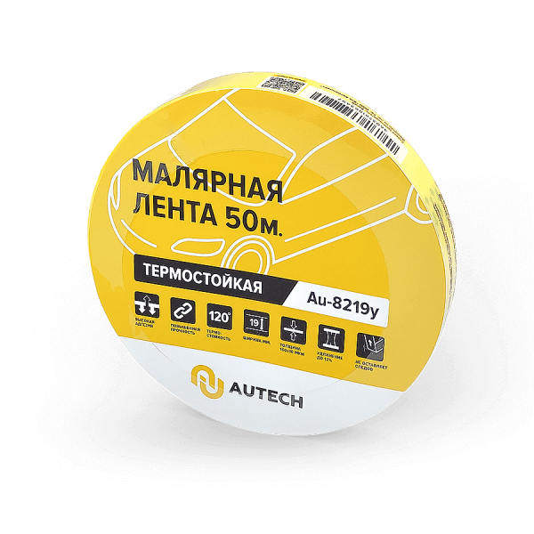 Маскирующая термостойкая лента 19мм x 50м 120 градусов (жёлтый), Au-8219Y