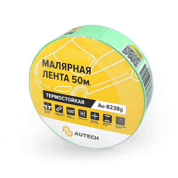 Маскирующая термостойкая лента 38мм x 50м 120 градусов (зеленый), Au-8238G