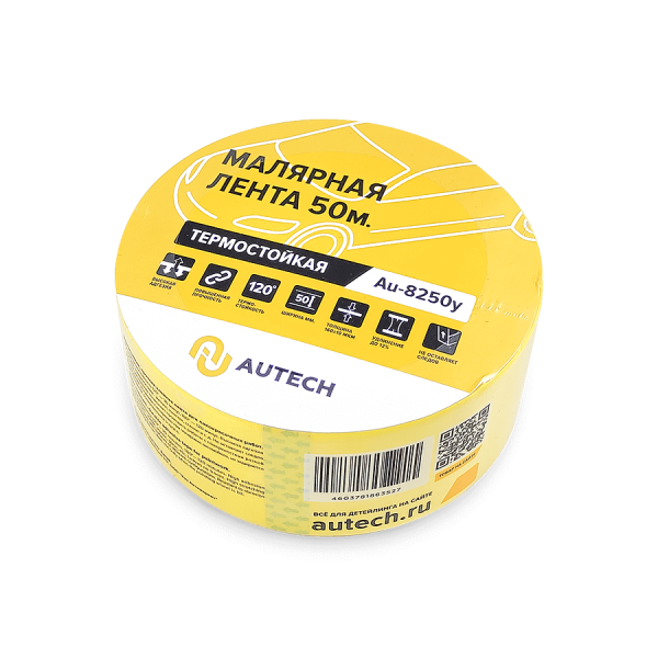 Маскирующая термостойкая лента 50мм x 50м 120 градусов (жёлтый), Au-8250Y