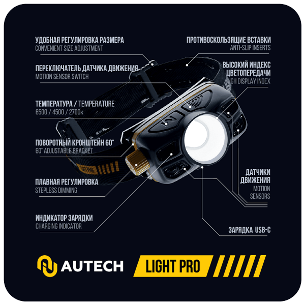 Налобный светодиодный аккумуляторный фонарь для освещения рабочего пространства панорамным лучом. Новейшая технология COB LED обеспечивает чрезвычайно мощное освещение, которое максимально рассеивает равномерный свет и освещает все поле обзора. Имеется регулировка по вертикали, что обеспечивает еще большее удобство при использовании. Фонарь оснащен новейшей технологией перезаряжаемых аккумуляторов с чрезвычайно большим сроком службы и устанавливает новые стандарты профессионального рабочего освещения. Эргономичный дизайн обеспечивает идеальную и удобную посадку, а тканая лента прочная и регулируемая. Фонарь обладает сенсорным режимом, при котором включается / выключается только взмахом руки перед лампой. Таким образом, свет можно легко включить / выключить даже в толстых перчатках.