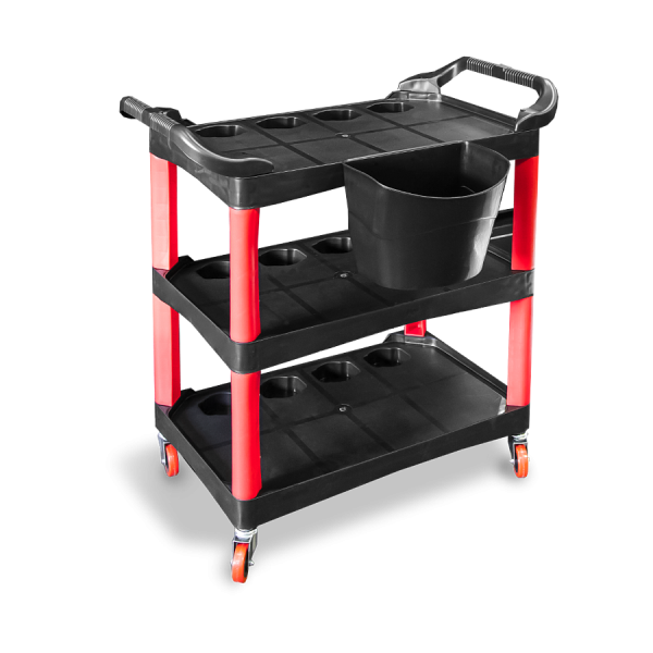 Пластиковый стол тележка на колесиках с боковым ведром. Место полировщика
