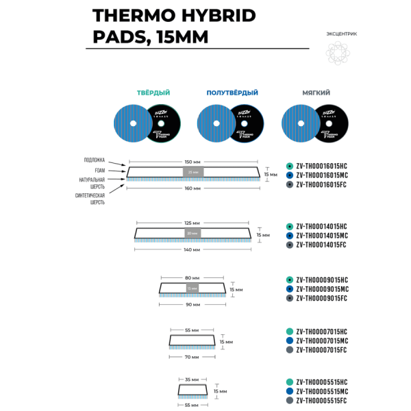 Полировальный гибридный круг Thermo Hybrid из натурального и искусственного меха (5 мм) на мягком Termo поролоне (10 мм) с липучкой предназначен для полировки ЛКП абразивными полировальными пастами Fine.