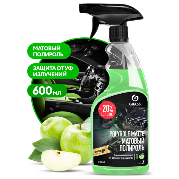 Профессиональный матовый полироль для обработки приборных панелей, очистки и полировки изделий из кожи, дерева, винила, пластика и резины. Сохраняет первоначальный цвет, не оставляет жирных пятен, препятствует оседанию пыли, придает матовый блеск. Средство обладает приятным ароматом.
