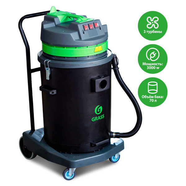 Профессиональный пылесос высокой производительности для сухой и влажной уборки с пластиковым баком. Электродвигатель с большим сроком службы.