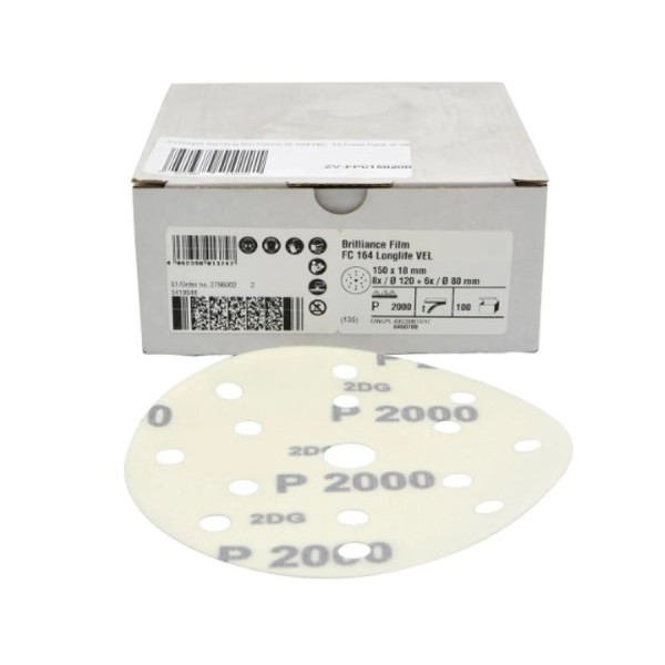 Шлифовальный круг P2000 под липучку Ø 150 мм на пленке, 15 отверстий, комплект 20 шт.
