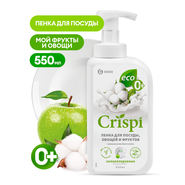 Средство для мытья посуды "CRISPI" ПЕНКА с ценными маслами белого хлопка (флакон 550 мл)