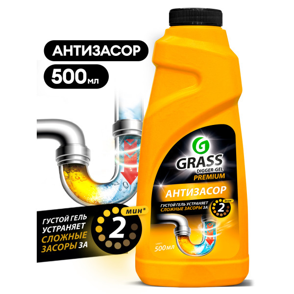 Средство щелочное для прочистки канализационных труб "DIGGER-GEL" Premium (флакон 500 мл)