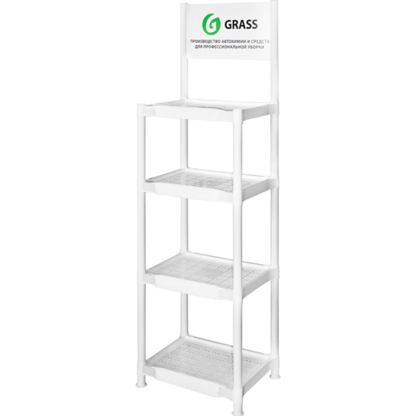 Пластиковый стенд напольного типа для демонстрации продукта в офисе или жилом помещении. Цвет: белый.