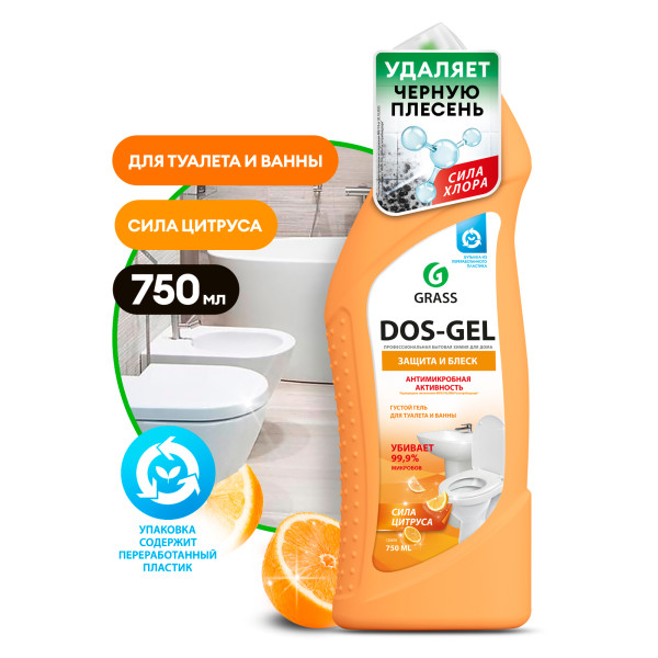 Универсальное чистящее средство DOS-GEL на основе активного хлора для мытья, дезинфекциии отбеливания. Идеально подходит для чистки унитазов, ванн, раковин, кафеля, стоков, сливов, пола и рабочих поверхностей. Обладает дезинфицирующими свойствами, удаляет плесень и грибок. Густая формула позволяет средству дольше оставаться на стенках, продолжая работать.